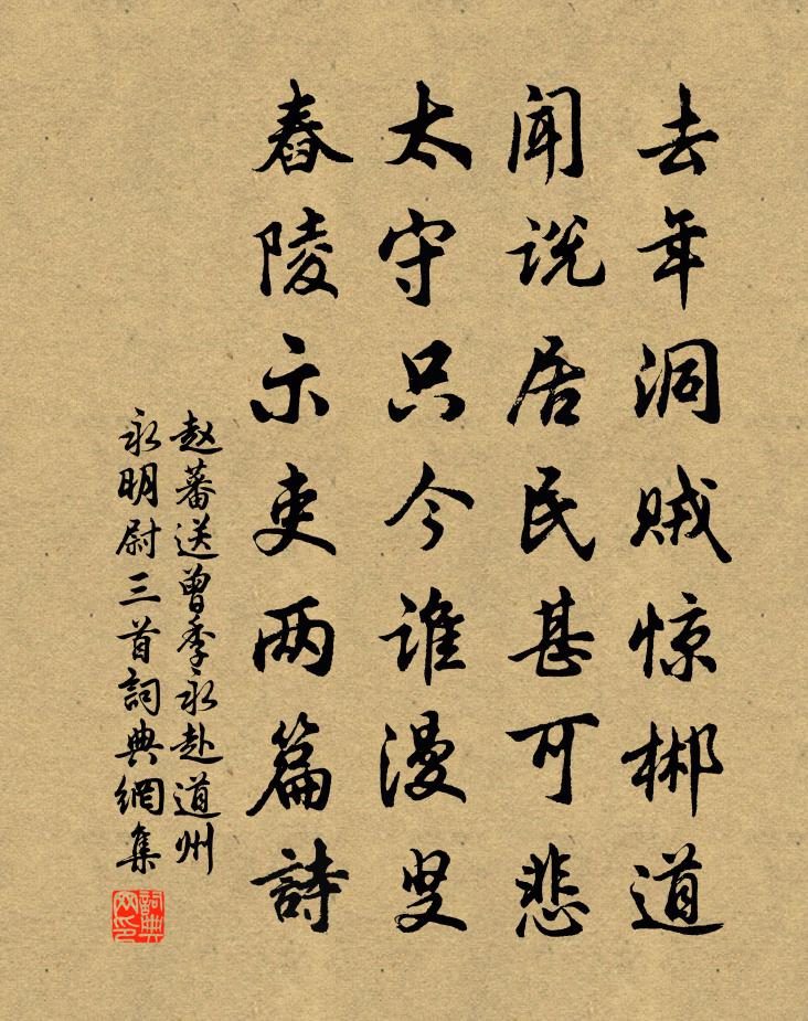 赵蕃送曾季永赴道州永明尉三首书法欣赏
