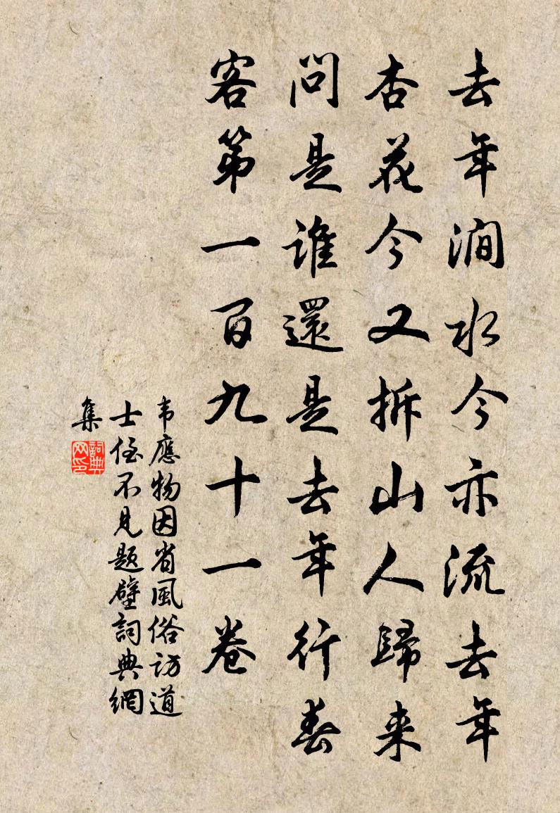 去年涧水今亦流,去年杏花今又拆。山人归来问是谁,还是去年行春客。